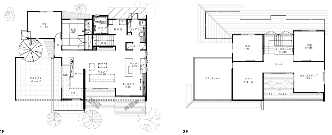 1階床面積/104.96㎡(31.75坪) 2階床面積/71.21m²(21.54坪) 延床面積/176.17m²(53.29坪) 敷地面積/271.94m²(82.26坪)